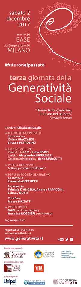 Hanno tutti, come me, il futuro nel passato”. L’ispirazione del poeta portoghese Fernando Pessoa è il claim scelto per la Terza Giornata della Generatività Sociale, che si terrà a Milano presso BASE sabato 2 dicembre 2017 dalle ore 10.30.