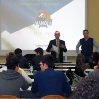 Michele Mondoni, marketing manager e responsabile eventi e comunicazione della Vanoli Basket Cremona – per conto di Sapiens Spa -, ha illustrato ai numerosi studenti presenti in aula, come le strategie di marketing possano essere una leva vincente ed efficace anche in contesti diversi da quelli aziendali.