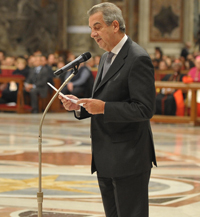E proprio l’icona di Maria Sedes Sapientiae, al termine della celebrazione è stata consegnata dalla delegazione universitaria australiana a quella africana, che la custodirà fino al prossimo dicembre 2010. L'iniziativa si inserisce nella collaborazione che si va sviluppando tra Atenei romani e africani dopo il recente Sinodo continentale. Delle «assidue ed efficaci forme di sostegno concreto all’Africa e allo sviluppo delle università africane», ha parlato il Rettore Lorenzo Ornaghi, nell’indirizzo d’omaggio rivolto a Benedetto XVI. Ornaghi ha inoltre espresso al Pontefice, una «dichiarazione di impegno a un nuovo slancio creativo, consapevole e coraggioso» dell’università. «Lo esigono - ha sottolineato - i moltiplicati luoghi dove la ricerca scientifica perderebbe il suo senso e potrebbe diventare pericolosa senza l’amicizia della sapienza. Lo esige, in particolare, l’idea alta di università, che non è ancora sfiorita, ma che tocca a ognuno di noi custodire, promuovere, diffondere».