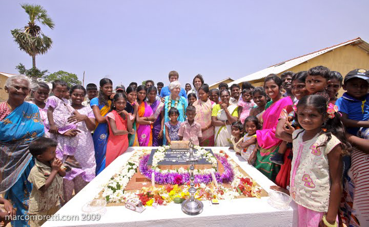 La signora Renata Stella con il figlio Giovanni, al centro, durante la festa per la consegna delle case intitolate a Federico StellaLa sua famiglia, però, non si arrende. Così, nel 2008 i lavori riprendono per essere completati nel 2009. Lo scorso 12 agosto la moglie Renata e Giovanni (al centro nella foto), uno dei tre figli, alla presenza di un ministro del governo dello Sri Lanka, hanno partecipato alla cerimonia di inaugurazione di quello che potrebbe essere il primo nucleo di un villaggio più grande. «Le case, consegnate all’inizio di luglio, sono al momento 23 - racconta Renata Stella -: purtroppo sette sono andate distrutte nel corso della guerra. Qualcuno si è offerto di occuparsi della ricostruzione. Vedremo. In realtà, aspettiamo anche che prenda forma l’impegno del governo di dotare il territorio di migliori infrastrutture. Se così sarà, con i miei figli sto pensando di costruire una scuola».