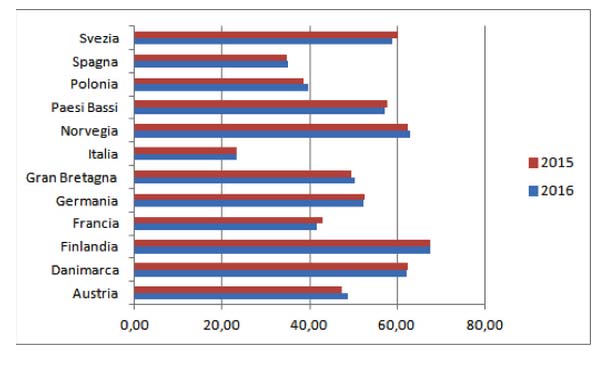Le cose per noi non vanno bene… «L’Italia è ultima in tutti questi fattori. Analizzare il rapporto tra i diversi Paesi, tenendo conto di un solo indice sintetico e ignorando le differenze storiche, sociali e culturali può essere fuorviante. È più interessante vedere come evolve un singolo Paese nel tempo, se è peggiorato o migliorato rispetto all’anno precedente. Miriamo a valutare l’impatto delle policies, cosa che in Italia non è stata mai fatta».
