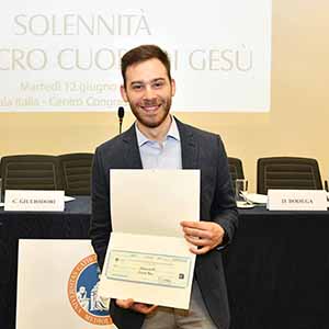 E' stato quindi consegnato al Dott. Gianvito Masi (nella foto) il Premio di laurea in memoria del Prof. Nicola Gentiloni Silveri, compianto Ordinario di Medicina Interna all’Università Cattolica e Direttore del Dipartimento di Emergenza e accettazione del Policlinico Gemelli. Il Premio è riservato a laureati del Corso di laurea magistrale a ciclo unico in Medicina e chirurgia che abbiano discusso nell’a.a. 2016/2017 una tesi di laurea nell’ambito della Medicina di Emergenza e Urgenza in relazione alla quale il Prof. Gentiloni Silveri diresse per anni la Scuola di Specializzazione.