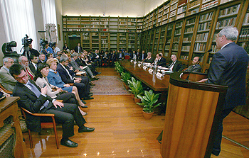 Una mattina di grande passione civile per il progresso nella lotta alla mafia rappresentato dalla firma della Convenzione, ma anche di tristezza e sconforto per l’attentato di Brindisi che ha sconvolto l’Italia poche ore prima. Il prorettore vicario Franco Anelli ha introdotto l’incontro soffermandosi sull’alto valore simbolico della sfida che i due atenei hanno lanciato alle mafie, proprio nel giorno in cui si è consumato un atto che ha colpito la scuola dedicata alla moglie di Giovanni Falcone nel giorno in cui la città pugliese attendeva l’arrivo della Carovana Antimafia di Libera. «Con questo master la lotta alla mafia riparte dai giovani, ed è per questo un gesto molto significativo - ha detto Livia Pomodoro - soprattutto quando la mafia cerca di soffocare sul nascere i suoi futuri avversari, che sono proprio i giovani». «Colpire una scuola come è successo questa mattina a Brindisi - ha aggiunto - è la sua tipica simbologia di morte».