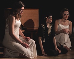Giudizio: Lo spettacolo è ritenuto originale ed efficace nella composizione degli snodi drammaturgici, interpretato con consapevolezza dagli attori dai quali emerge il ruolo della protagonista Ecuba, Federica Villareale, che ha dato tensione all’intera rappresentazione, dimostrando una forte presenza scenica. La giuria ha apprezzato, nella messinscena, la cura nella ricerca simbolica dei colori. In coerenza con le intenzioni della rappresentazione, nella scena di apertura, la regia ha universalizzato il tema della prigionia di guerra presentando un efficace lamento corale di prigioniere africane, in cui sono riconoscibili riferimenti alla contemporaneità, ma in una dimensione efficacemente extra-temporale e pertanto poetica.