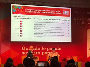 Dopo l’anticipazione dei primi risultati nel corso dell’evento “Parole a scuola”, organizzato a febbraio presso la sede milanese dell’Ateneo, i dati inediti di EU Kids Online sono stati presentati nel contesto della nuova edizione di Parole O_stili, in corso a Trieste. L’attenzione è concentrata sul ruolo di mediazione esercitato dai genitori e dagli insegnanti: un ruolo fondamentale per ridurre l’impatto dei rischi e gli eventuali danni, ma purtroppo ancora sottovalutato e poco praticato, se è vero che solo il 52% dei ragazzi ha ricevuto in famiglia consigli su come usare Internet in modo sicuro e che tale percentuale scende al 26% per quanto riguarda il contributo della scuola. Le competenze digitali dei ragazzi, ben lontani da quanto suggerito dalla metafora illusoria dei “nativi digitali”, meritano in media – per loro stessa valutazione – un classico “7+”.