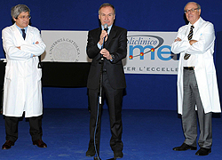 «Se si vuole invecchiare bene, fisicamente e mentalmente, è necessario praticare attività fisica costantemente», ha detto Roberto Bernabei (a destra nella foto), professore ordinario di Gerontologia e geriatria all’Università Cattolica di Roma, che con il collega Paolo Zeppilli (a sinistra nella foto), professore ordinario di Medicina dello Sport, hanno ideato il progetto. «La diminuita efficienza fisica – ha proseguito Bernabei – che in età avanzata può arrivare a compromettere la capacità di un soggetto di impegnarsi in attività anche semplici, pur geneticamente predeterminata, varia significativamente in funzione dello stile di vita. L’attività fisica regolare, invece, induce nella popolazione anziana miglioramenti fisiologici misurabili, influenzando positivamente anche le funzioni cognitive, la depressione e la percezione del movimento». «Il Centro Fitness del Centro di Medicina dell’Invecchiamento del Policlinico Gemelli – ha concluso il geriatra - , ha messo a punto una serie di protocolli a seconda della patologia di cui si è affetti. La nostra unione con la Medicina dello Sport è stato un connubio giusto, direi inevitabile e benefico».