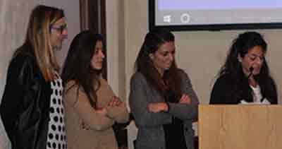 nnovazione e tradizione ancora una volta si sono intrecciate nei canti gospel intonati dai ragazzi del coro di un gruppo studentesco della Cattolica che dal latino Adeste Fideles hanno ritmato a più voci con la chitarra Nazareth Morning, Les anges dans nos campagnes, Amazing grace. Infine il richiamo è andato ai grandi progetti internazionali, come ci hanno ricordato alcuni rappresentanti gli studenti degli ultimi anni della facoltà di Psicologia in brillanti rime incrociate (nella foto).