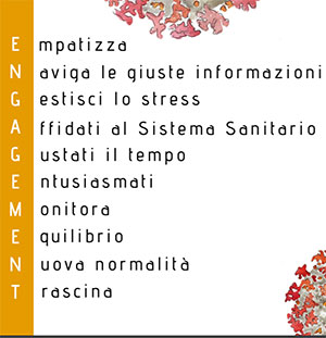 A partire dalla costruzione di un Vademecum che si sviluppa sull’acronimo della parola “engagement”: ogni lettera della parola genera un messaggio chiave, un suggerimento che possiamo adottare nella vita di tutti i giorni per essere ingaggiati in una gestione responsabile di questa emergenza sanitaria.