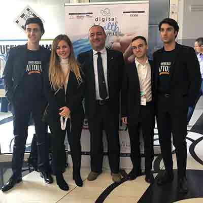 I giovani premiati, accompagnati da Stefano Villa, docente di Economia Aziendale della Facoltà di Economia e coordinatore del Corso di laurea triennale in Economia e gestione dei servizi presso il Campus di Roma (al centro nella foto, con gli studenti vincitori), si sono aggiudicati la possibilità di un colloquio con finalità di assunzione presso “Reply”, la società specializzata nella progettazione e realizzazione di soluzioni innovative nei settori dei Servizi Digitali.