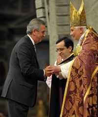 E proprio l’icona di Maria Sedes Sapientiae, al termine della celebrazione è stata consegnata dalla delegazione universitaria australiana a quella africana, che la custodirà fino al prossimo dicembre 2010. L'iniziativa si inserisce nella collaborazione che si va sviluppando tra Atenei romani e africani dopo il recente Sinodo continentale. Delle «assidue ed efficaci forme di sostegno concreto all’Africa e allo sviluppo delle università africane», ha parlato il Rettore Lorenzo Ornaghi, nell’indirizzo d’omaggio rivolto a Benedetto XVI. Ornaghi ha inoltre espresso al Pontefice, una «dichiarazione di impegno a un nuovo slancio creativo, consapevole e coraggioso» dell’università. «Lo esigono - ha sottolineato - i moltiplicati luoghi dove la ricerca scientifica perderebbe il suo senso e potrebbe diventare pericolosa senza l’amicizia della sapienza. Lo esige, in particolare, l’idea alta di università, che non è ancora sfiorita, ma che tocca a ognuno di noi custodire, promuovere, diffondere».
