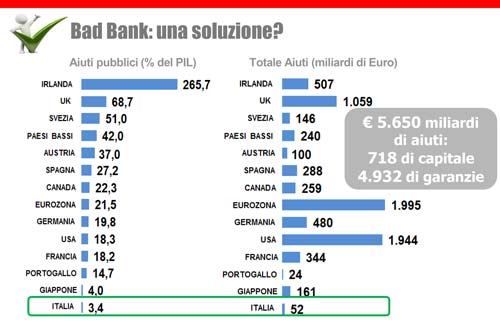L’Italia invece? «Su questo fronte il nostro Paese si è mosso in ritardo a causa delle forti resistenze che il tema degli aiuti di Stato incontra. Basti pensare che siamo al tredicesimo posto per aiuti pubblici rispetto al Pil. Il problema è che ora, con la nuova direttiva europea sul salvataggio delle banche, è la stessa Unione Europea a mettere in discussione la validità di questo piano, anche se si tratta degli stessi Paesi che hanno fatto per anni ricorso agli aiuti pubblici».